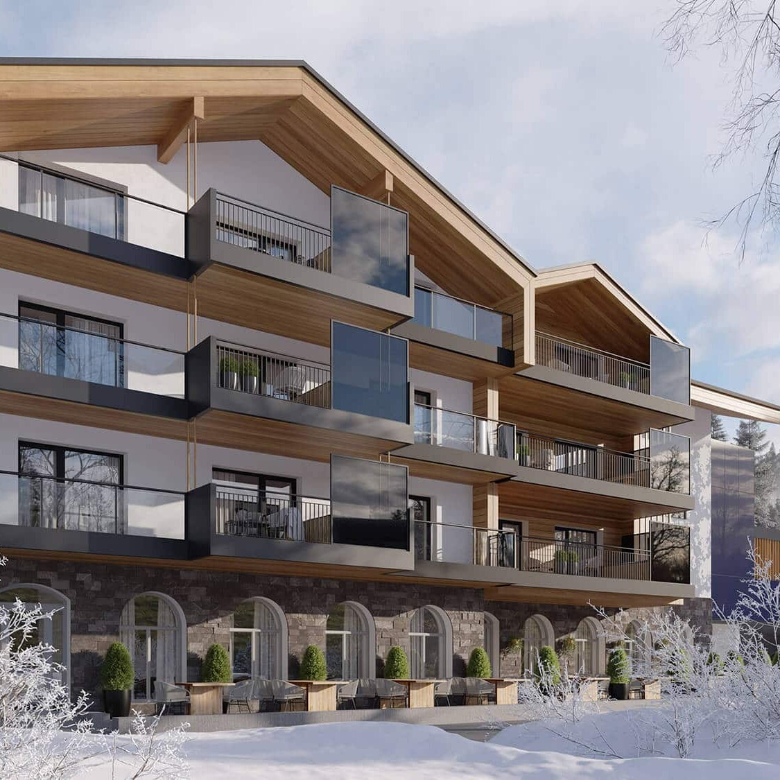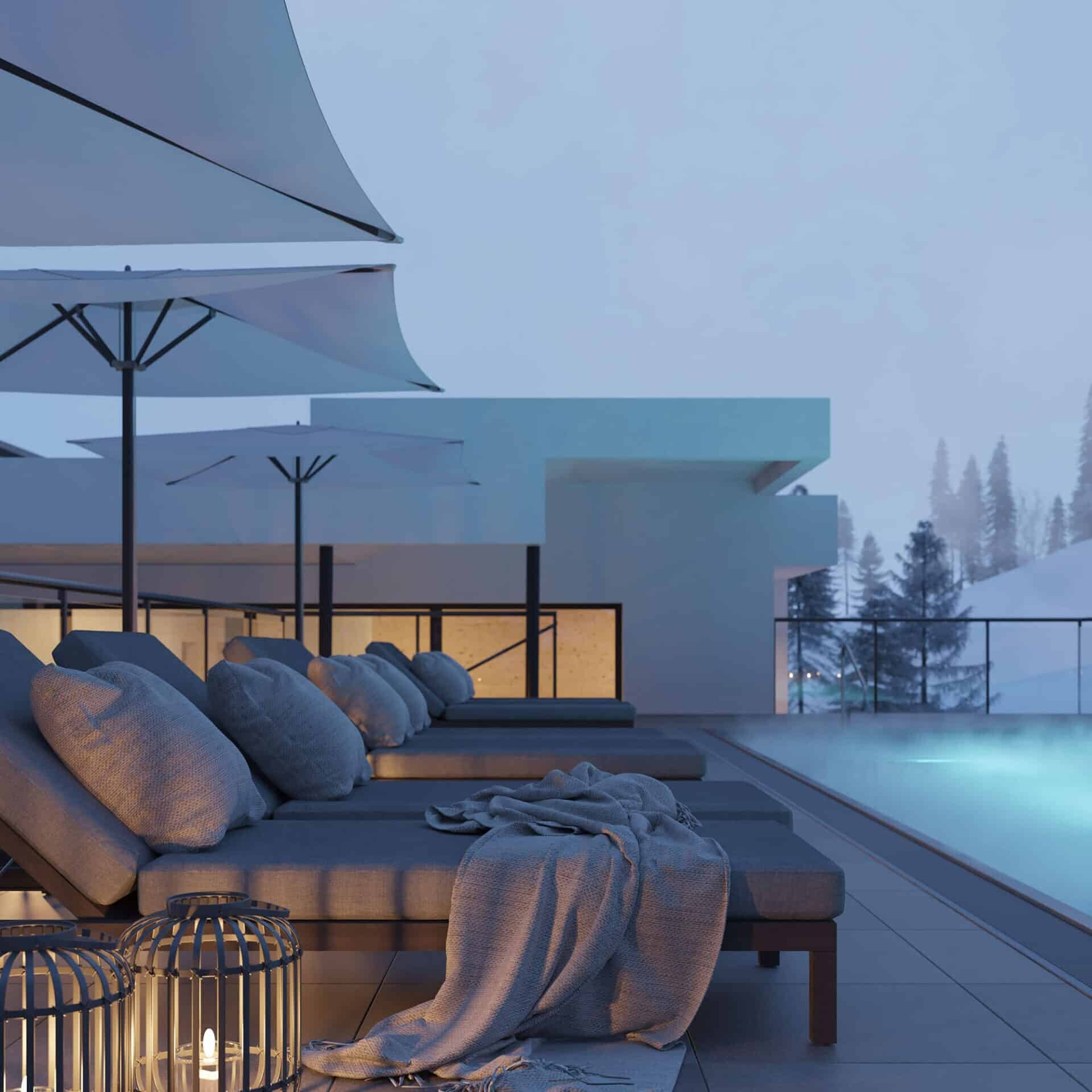 Hier komen 13 luxe en comfortabele appartementen voor 5 tot 9 personen. Luxe appartementen met privé wellness faciliteiten in Berwang. Elk appartement is zorgvuldig ontworpen, met aandacht voor een optimale indeling en uitstraling. Ieder appartement heeft een eigen in-house wellness en parkeergelegenheid in de overdekte parkeergarage.