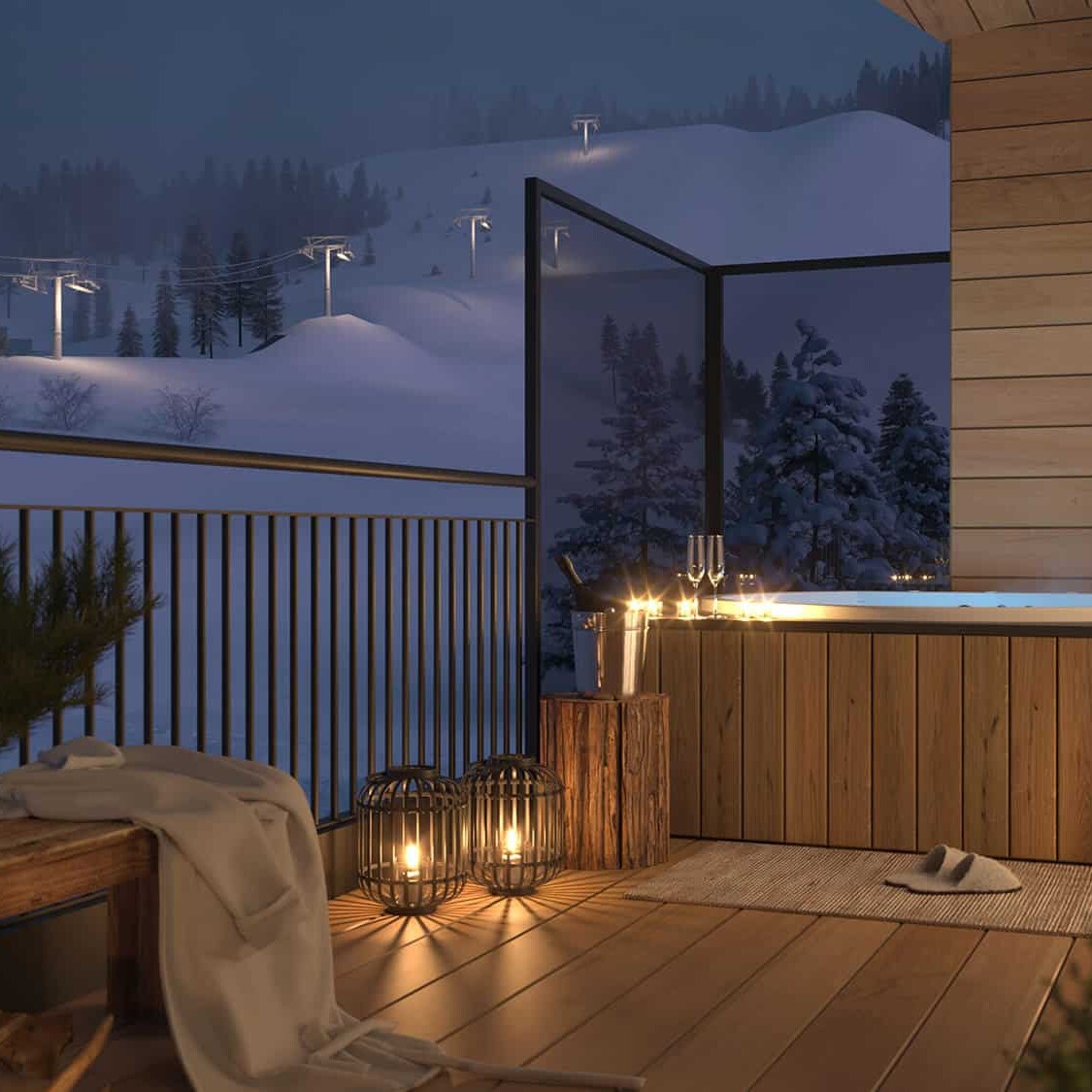 Uitgerust met sauna met panoramisch uitzicht en zwembad aan de skipiste. Liever privé? Stap dan in de eigen sauna van het appartement of in het warmwaterbad op het terras, ook met panoramisch uitzicht
