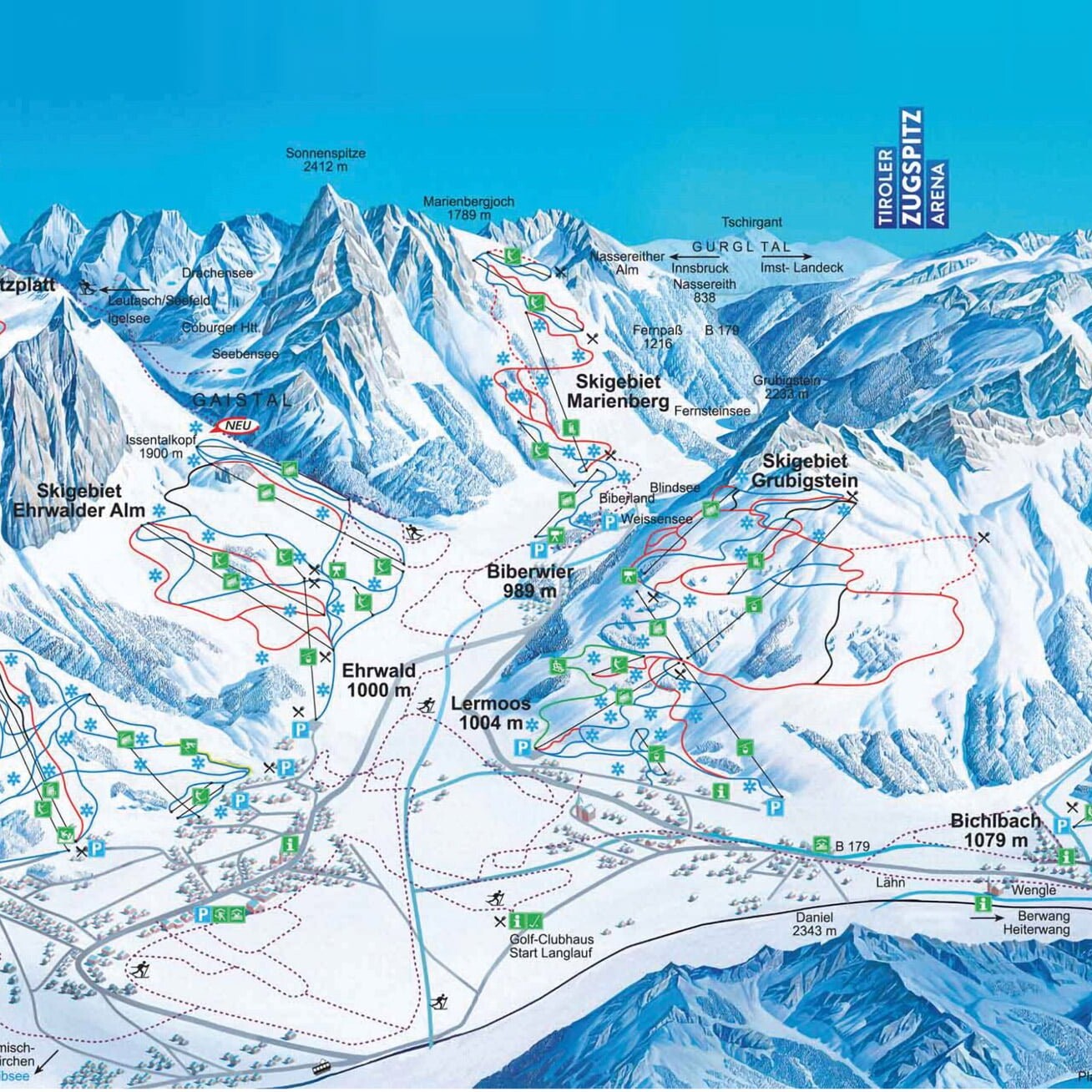 Aan de voet van de hoogste berg van Duitsland, de 2.962 meter hoge Zugspitze, vinden we op slechts 800 kilometer vanaf Nederland, net over de grens van Oostenrijk, één van de populairste familie-skigebieden van Tirol met de lieflijke dorpjes Ehrwald, Lermoos, Bichlbach, Berwang en Biberwier.