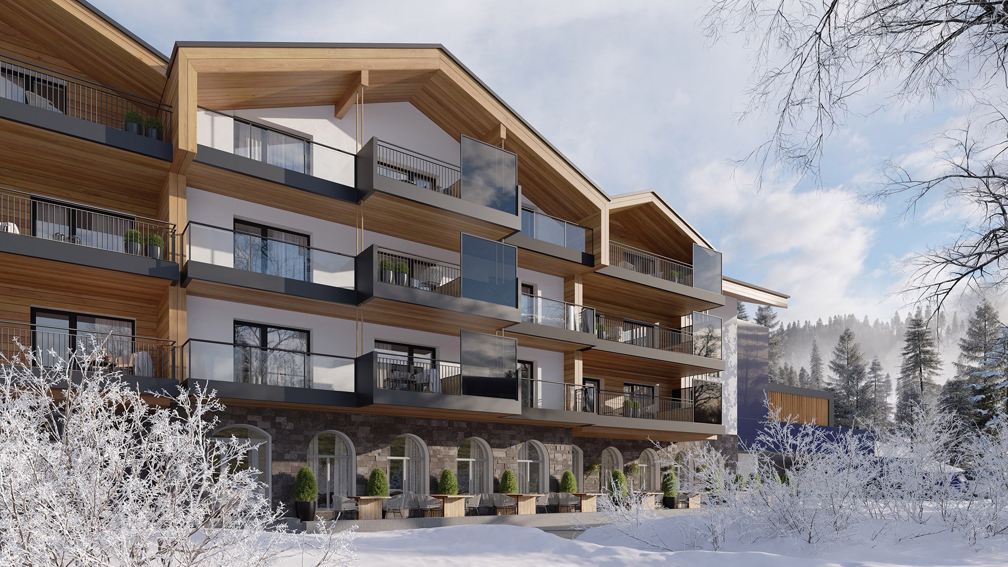 Op een perfecte locatie aan de skipiste in de Tiroler Zugspits Arena wordt ons nieuwste project Berwanger Hof Wellness Apartments ontwikkeld. Het bestaat uit nieuwbouw en herontwikkeling van het voormalige en legendarische hotel Berwanger Hof en het bijbehorende Jagdhaus en Alpenspitze.